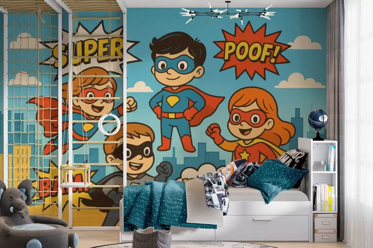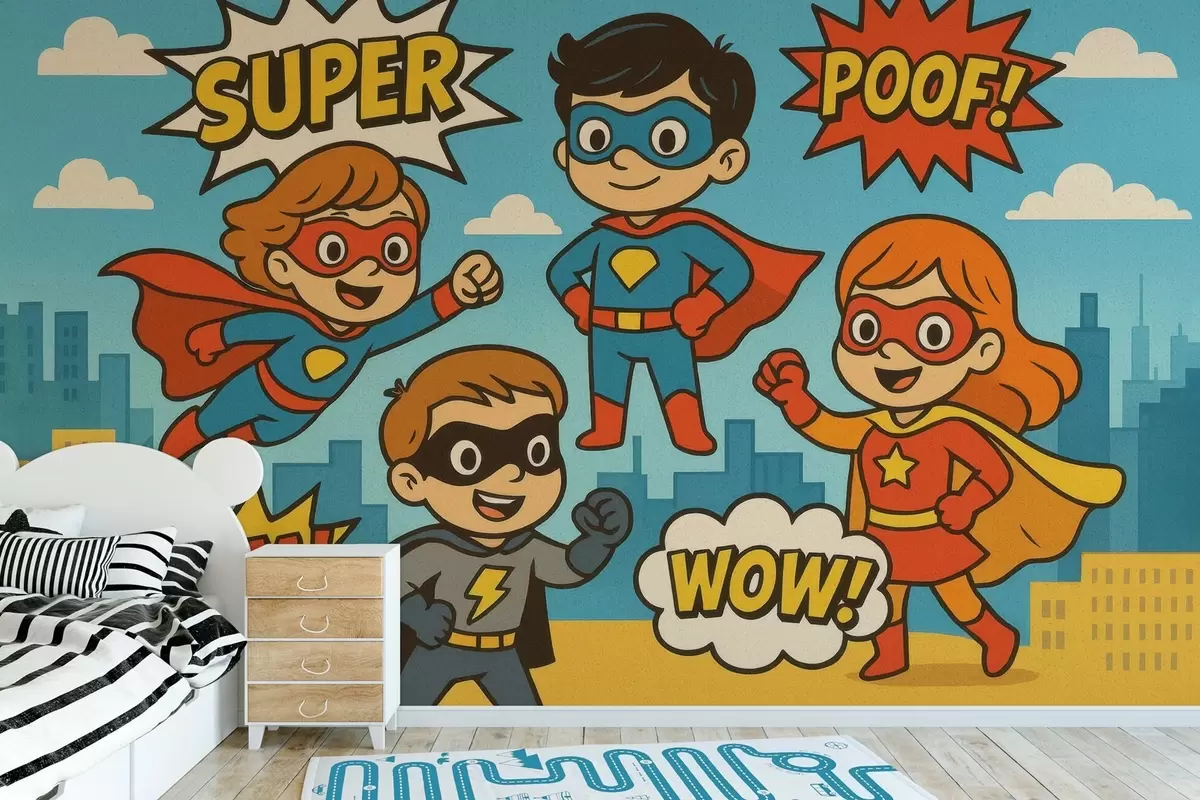 Фототапет забавни супергерои в стила на комиксите Nr w04625