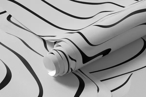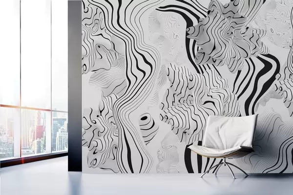 Фототапет абстрактни органични форми в 3D стил в бели и сиви тонове с черни ивици Nr w04627