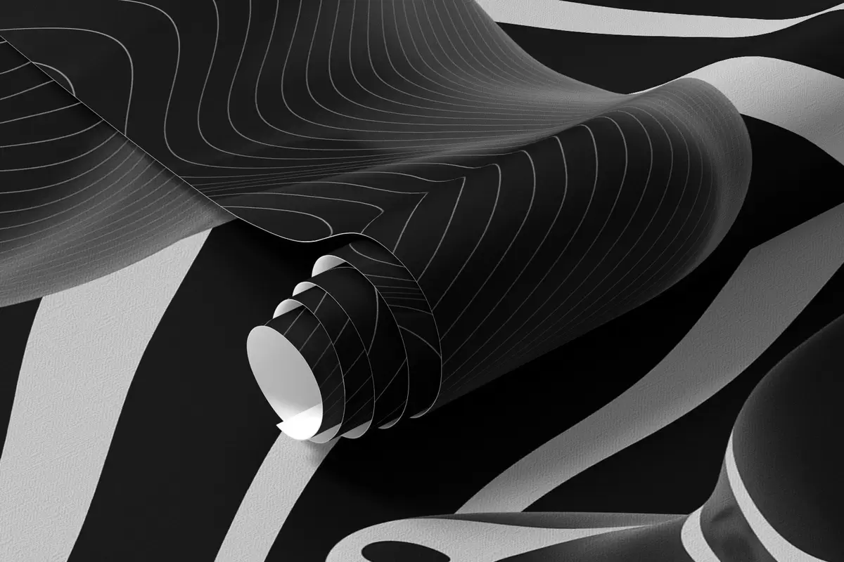 Фототапет абстрактни органични форми в 3D стил в черни тонове с бели ивици Nr w04628
