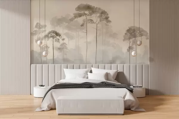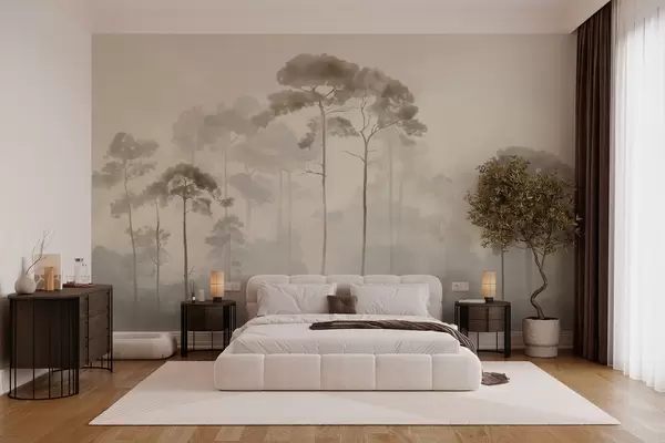 Фототапет светли силуети на борови дървета в акварелен стил Nr w04634