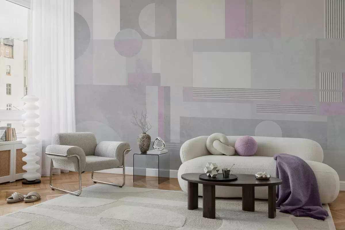 Фототапет абстрактна геометрия в сиви и лавандулови тонове w04635v1