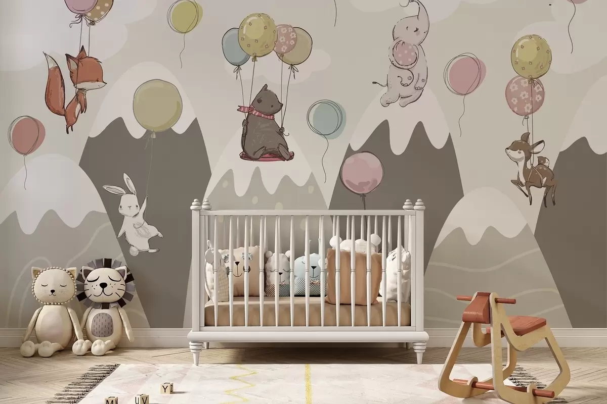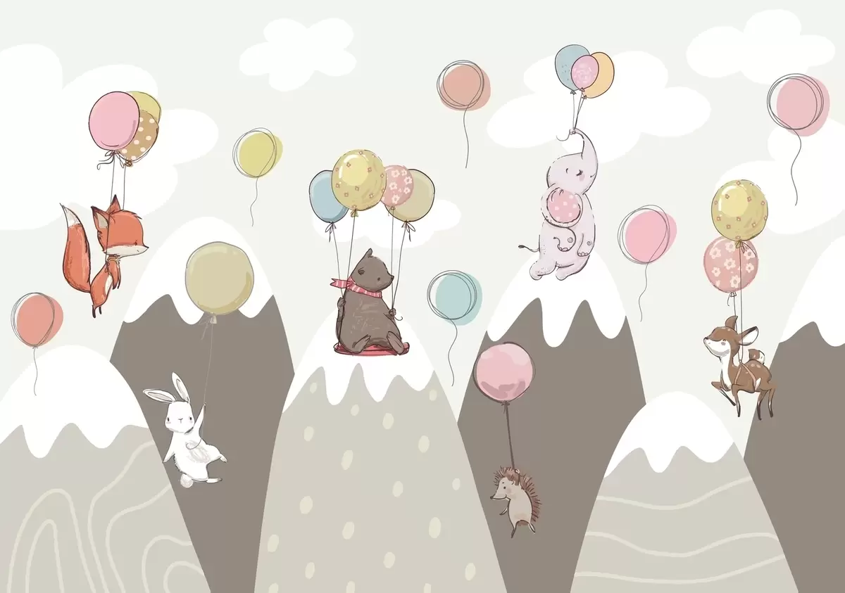 Фототапет Детски скандинавски планини с животни Nr w04651