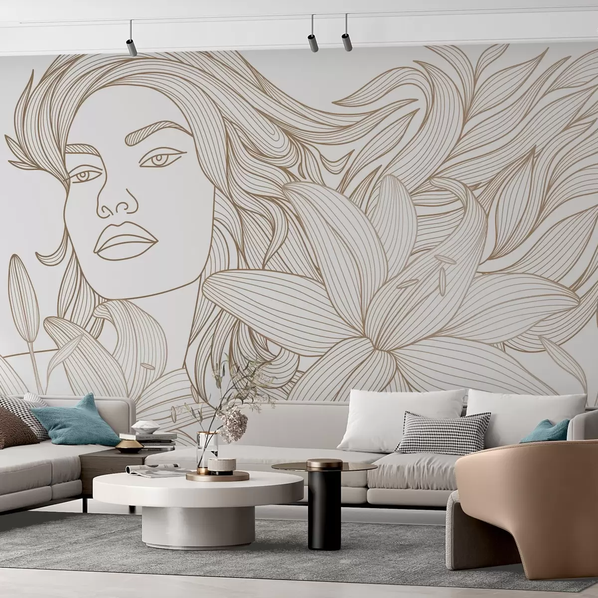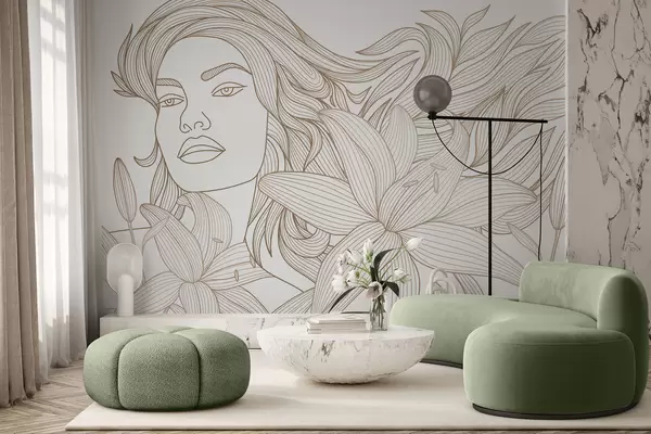 Фототапет Портрет на момиче в нюанси на бежово с лилии Nr w04689v1