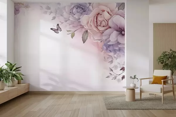 Фототапет Нежни розови и лилави цветя с пеперуда Nr w04711