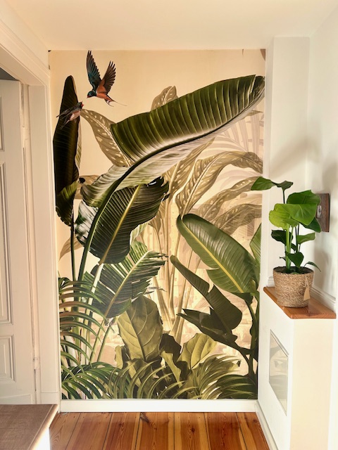 Можете да почистите тапетите много внимателно с леко влажна гъба. Не препоръчваме обаче да търкате или да използвате почистващи препарати за почистване на тапета, тъй като това може да повреди покритието и цветовете на тапета.