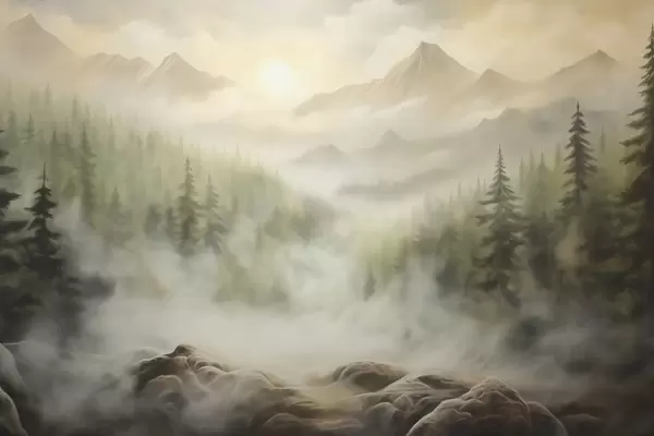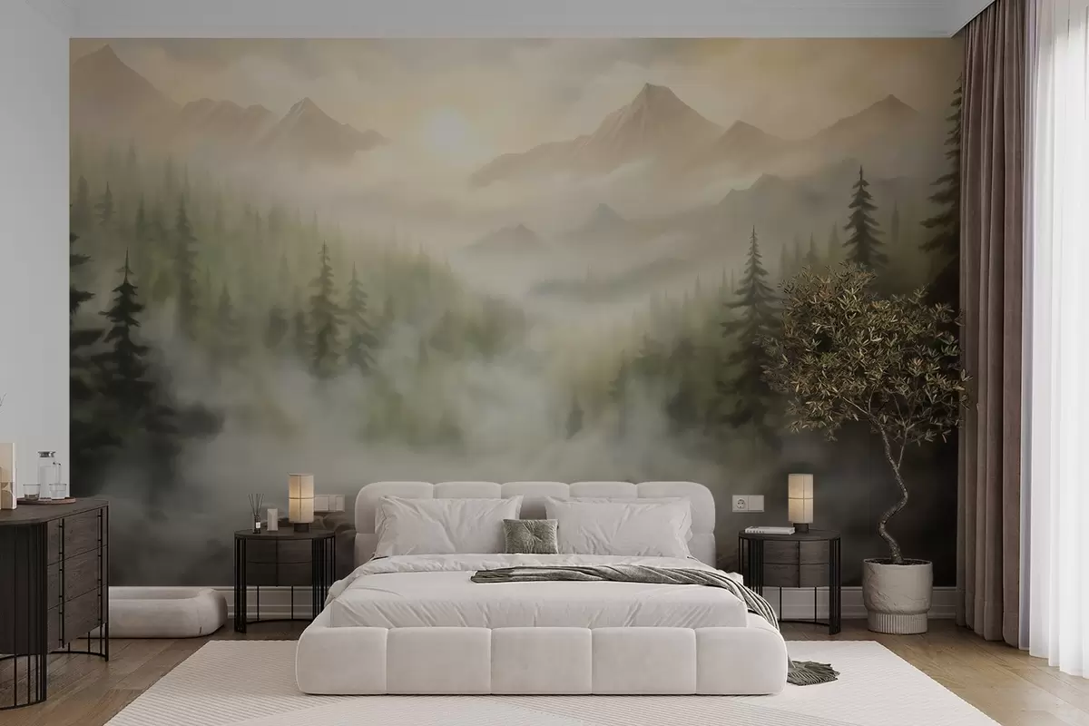 Фототапет Гора в мъглата на фона на планините Nr w04730