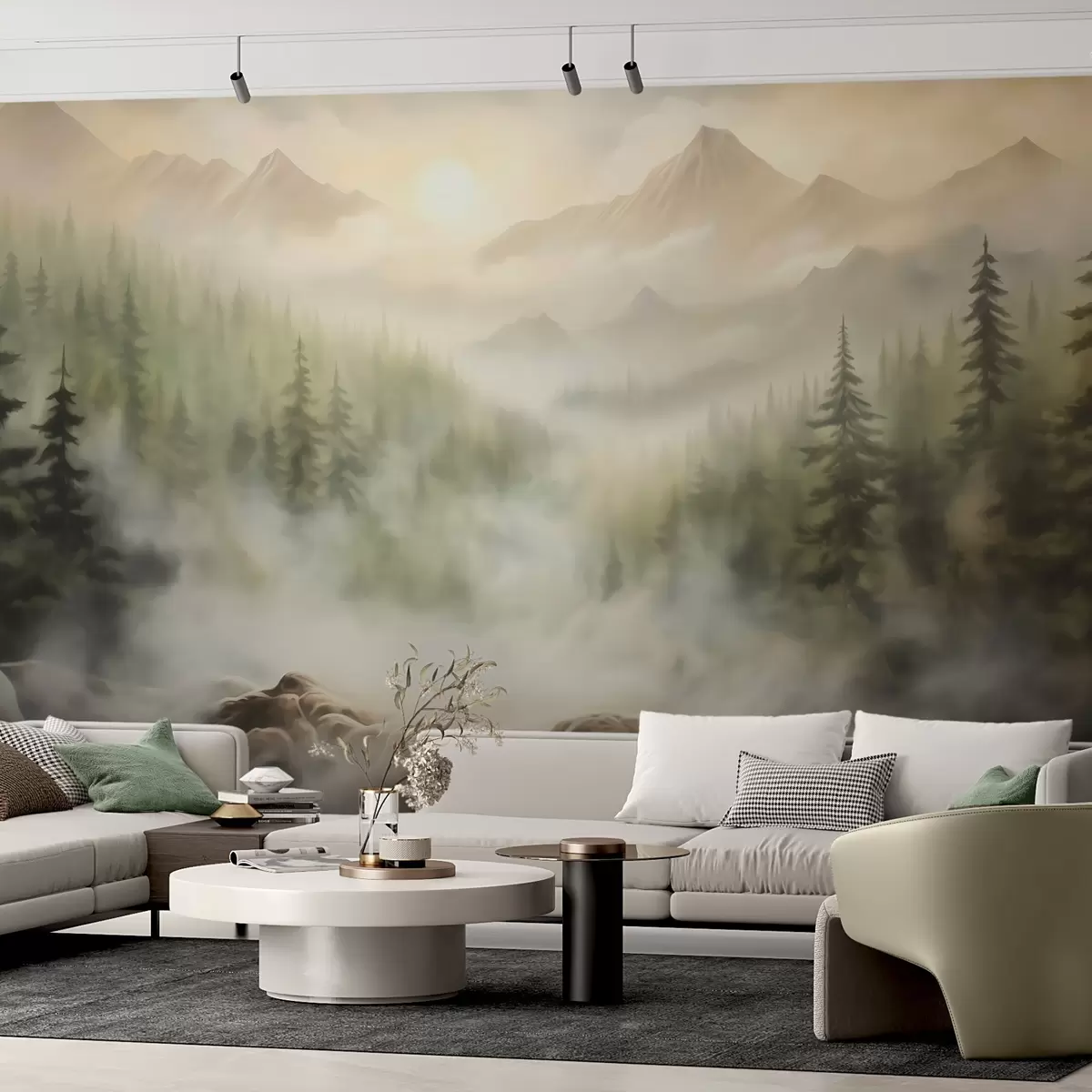 Фототапет Гора в мъглата на фона на планините Nr w04730
