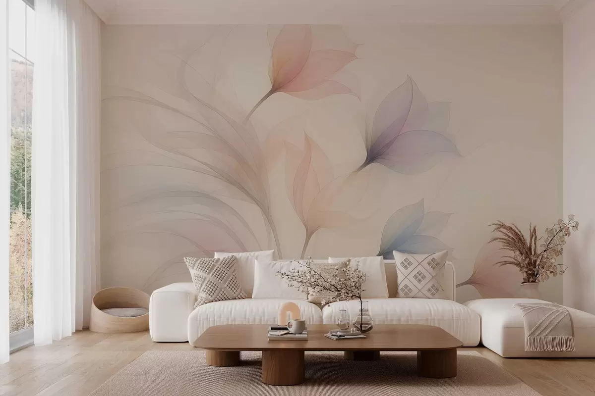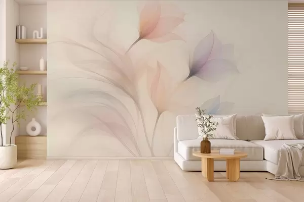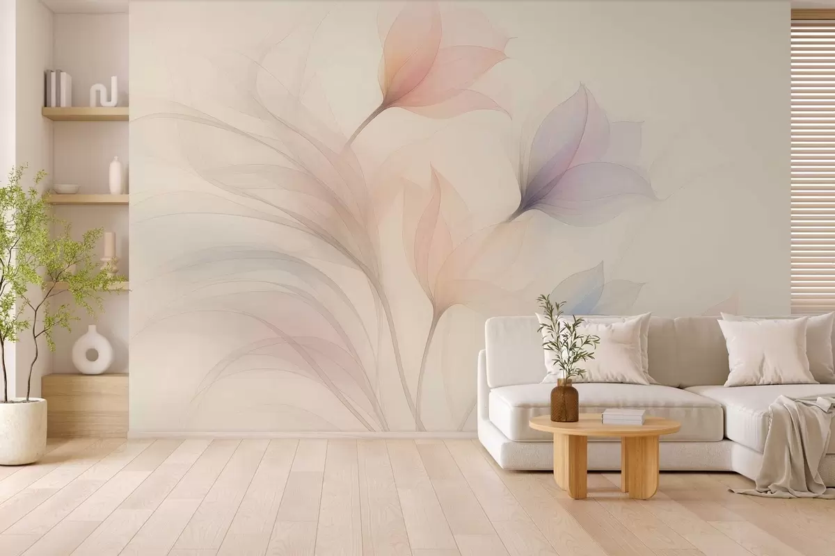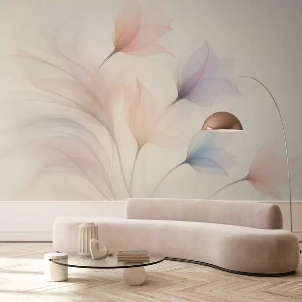 Фототапет деликатни полупрозрачни лалета на бежов фон Nr w04754