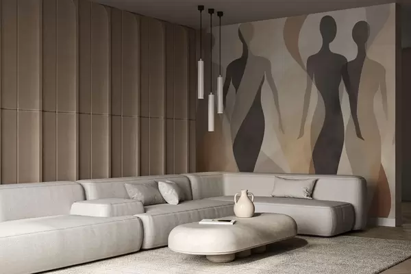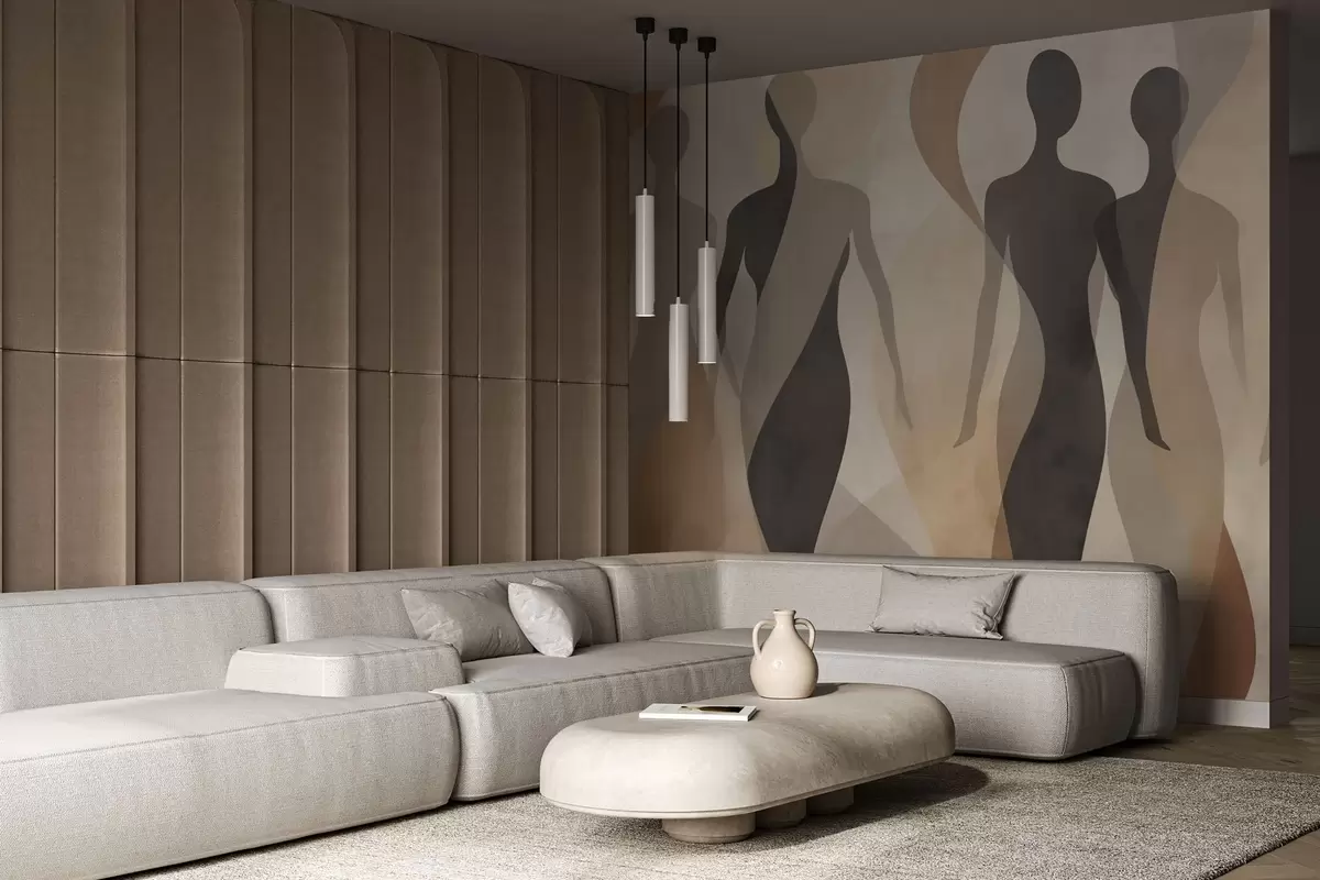 Фототапет Силуети и меки вълни в топли бежово-сиви тонове Nr w04787