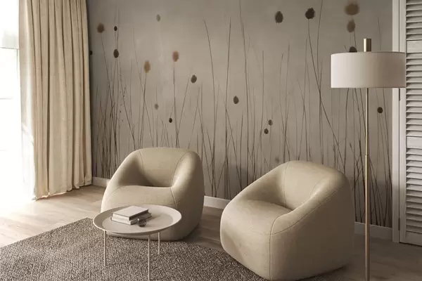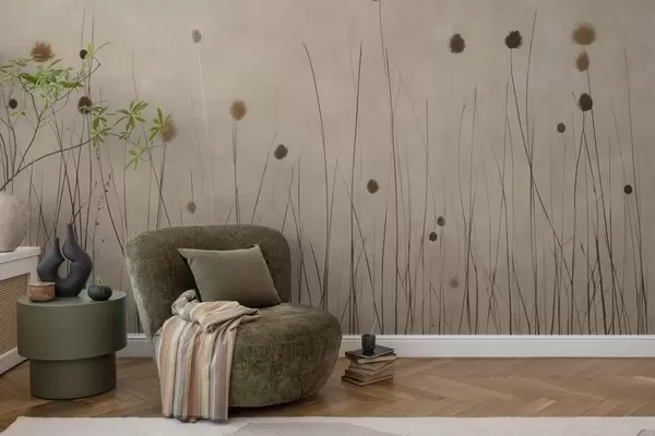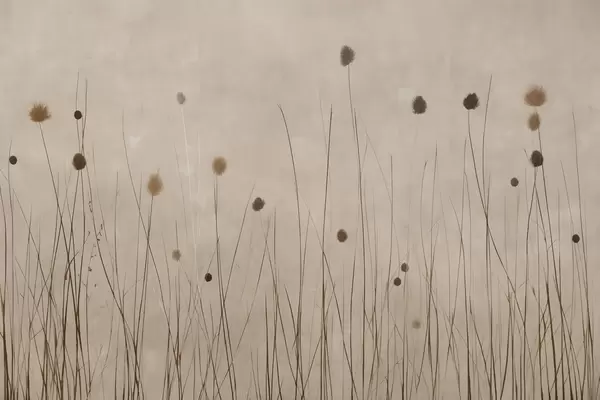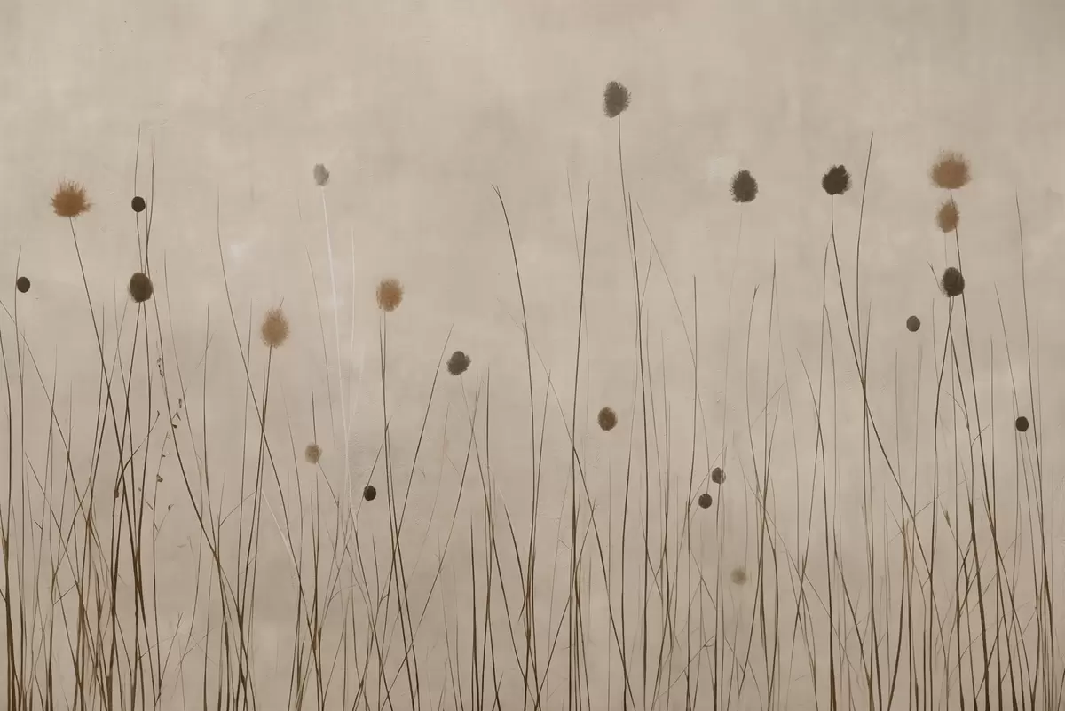 Фототапет Тънки треви и пухкави семенни глави на топъл бежов фон Nr w04793