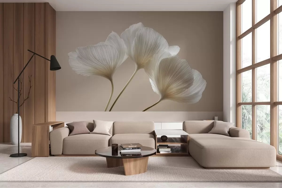 Фототапет три нежни цветя на бежов фон Nr w04810