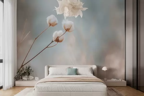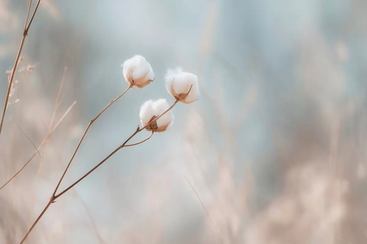 Фототапет три памучни цветя на размазан фон Nr w04820