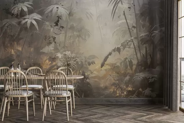 Фототапет Боядисана джунгла зад мръсна бетонна стена Nr w04833