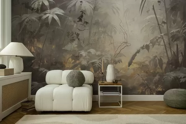 Фототапет Боядисана джунгла зад мръсна бетонна стена Nr w04833