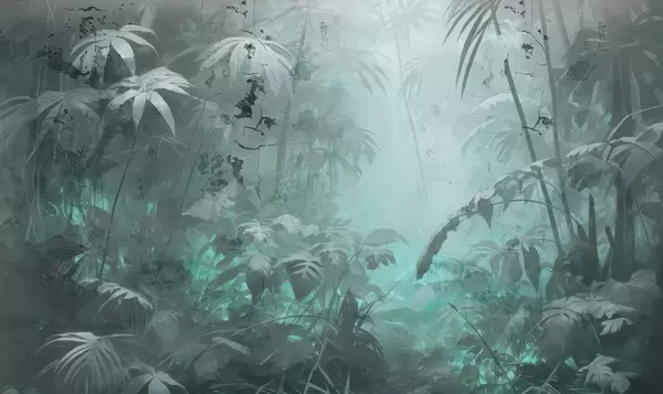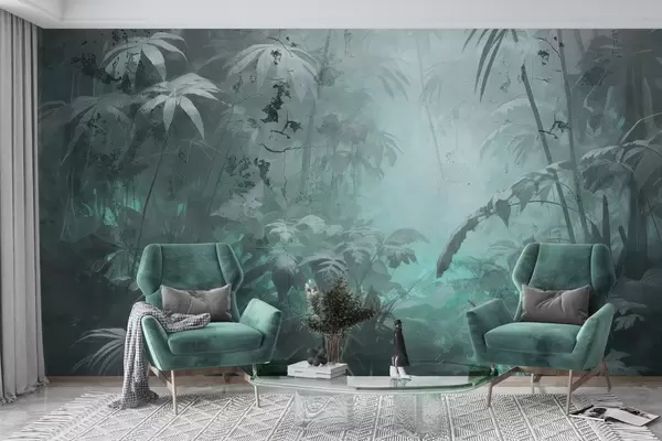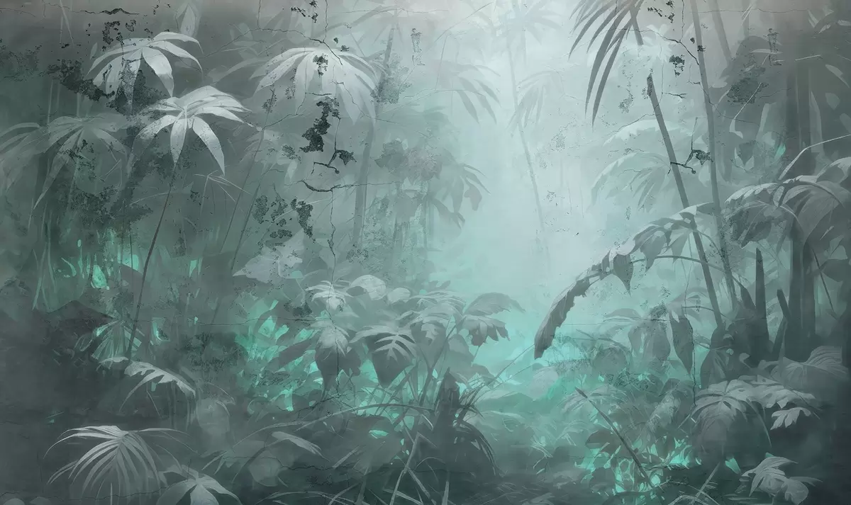 Фототапет Боядисана джунгла зад мръсна бетонна стена Nr w04833v1