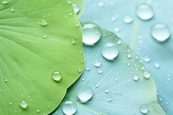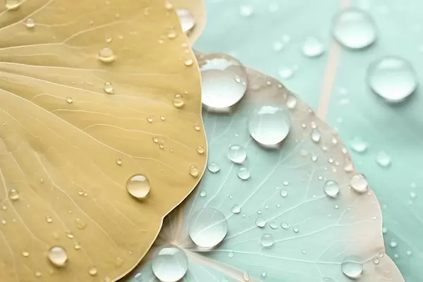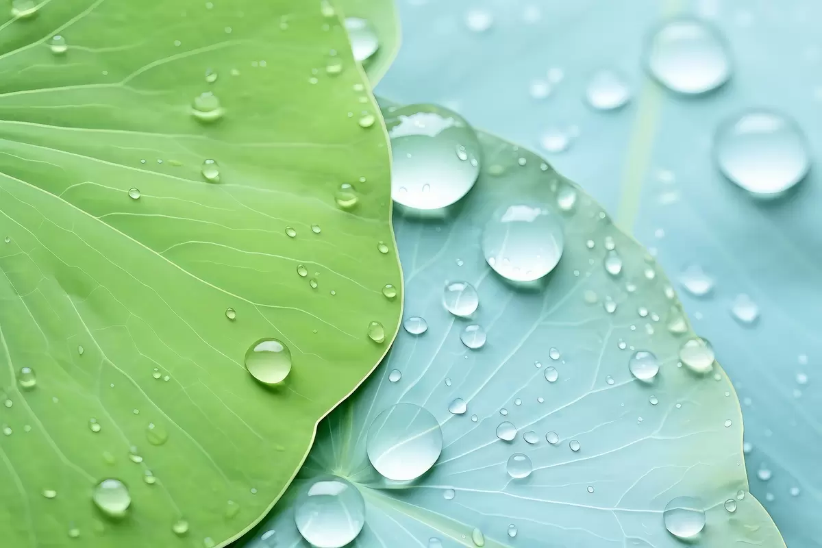 Фототапет Капки вода върху листа макро акварел Nr w04838