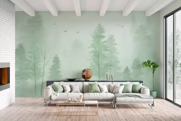 Фототапет аерофотография на гора в зелени тонове, изрисувана в акварелен стил Nr w04872v1