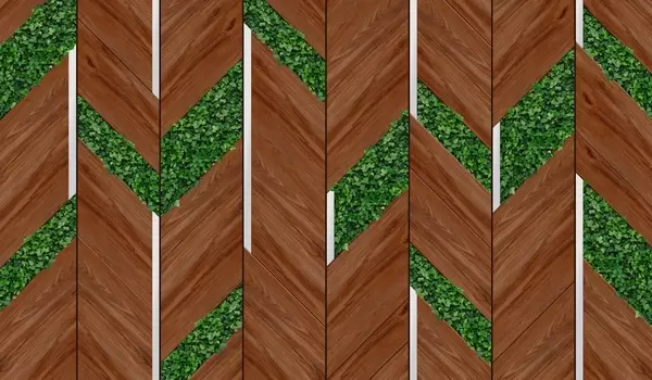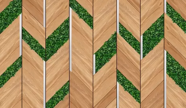 Фототапет имитация на светли дървени панели с растителни вложки Nr w04875