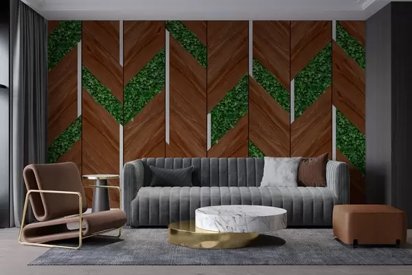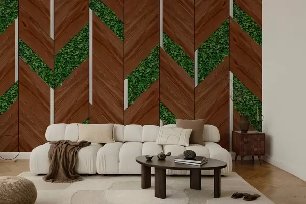 Фототапет имитация на тъмни дървени панели с растителни вложки Nr w04875v1