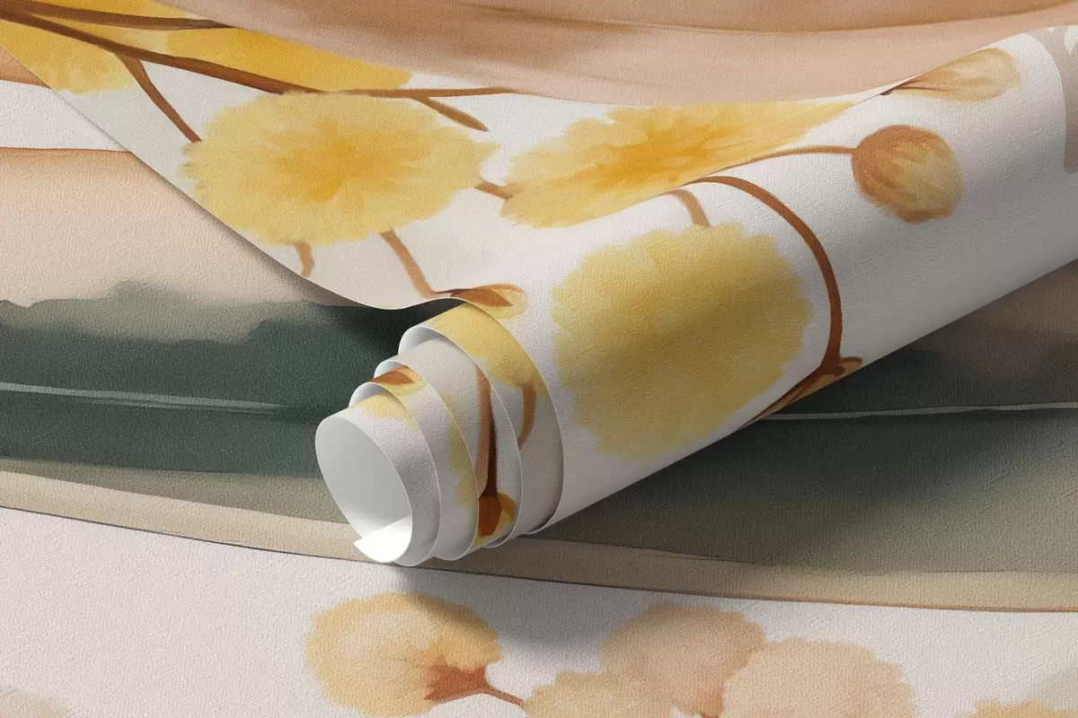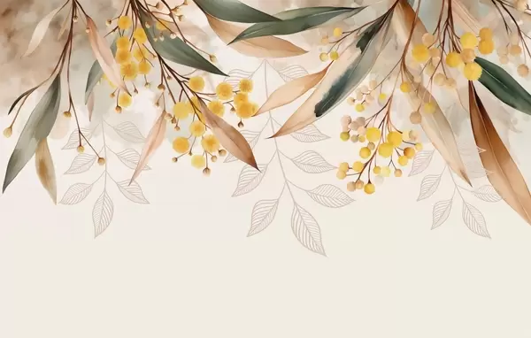 Фототапет цветя и листа от мимоза, падащи отгоре в акварелен стил Nr w04880