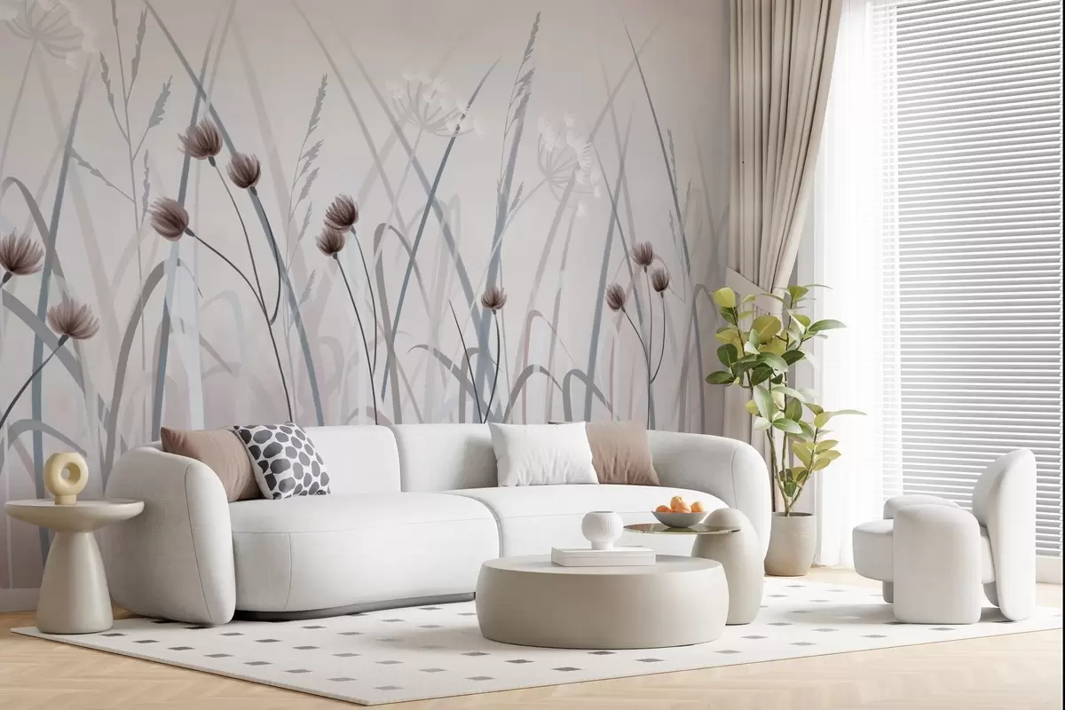 Фототапет Нарисувана трева и цветя Nr w04900v1