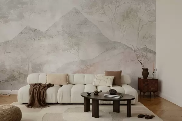 Фототапет Меки пастелни планини и дървета в лека мъгла Nr w04954