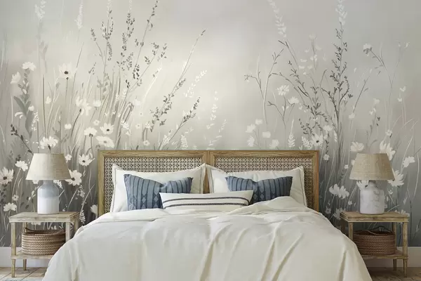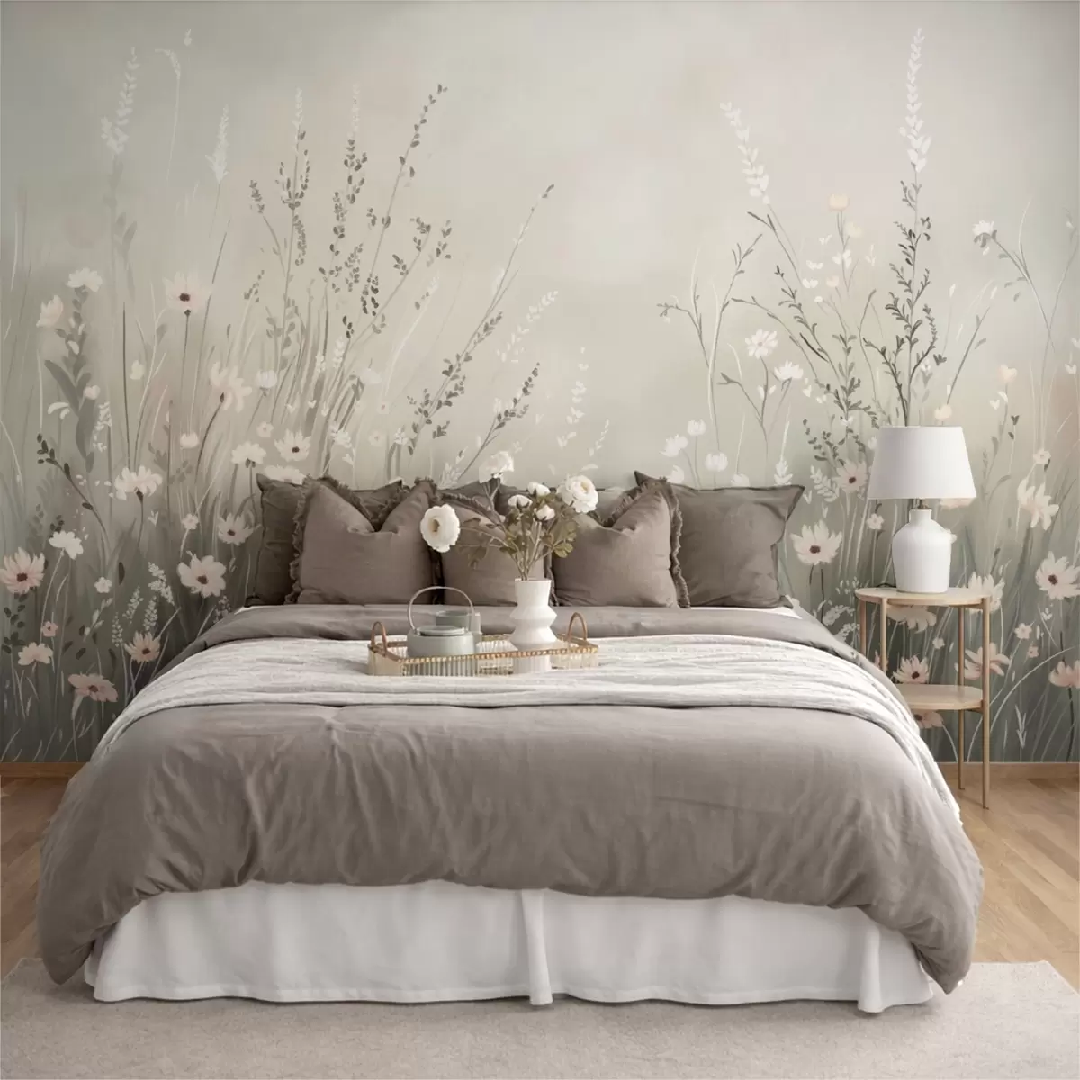 Фототапет Мека ливадна сцена с бели цветя и нежни треви Nr w05015v1