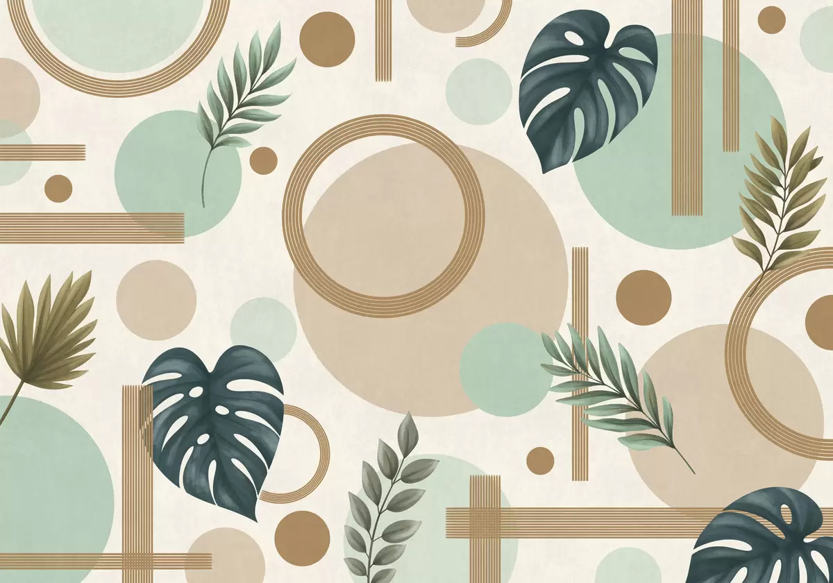 Фототапет Геометричен мотив с листа в зелена палитра Nr w05018v1