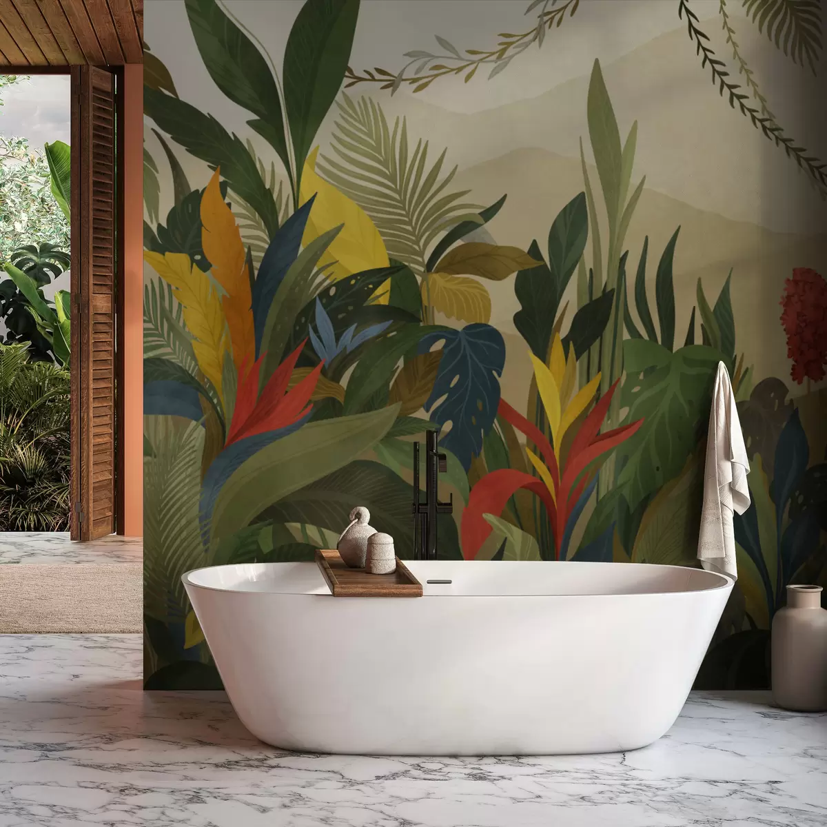 Фототапет Тропическа растителност с големи листа и цветя Nr w05019
