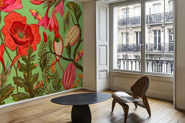 Фототапет Декоративни цветя и птици на зелен фон Nr w05036v1