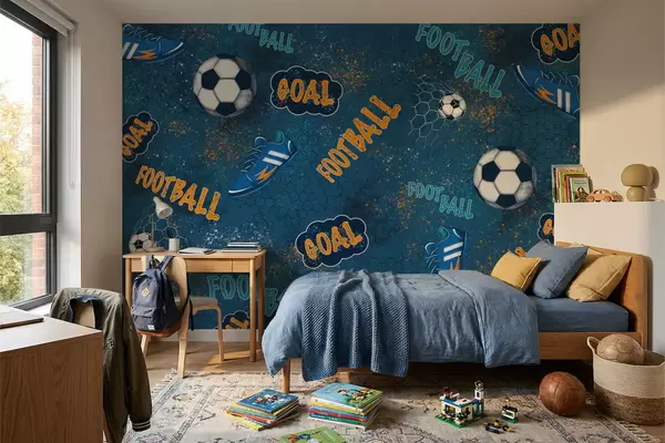 Фототапет Детски мотив с топки, обувки и спортни думи Nr w05037