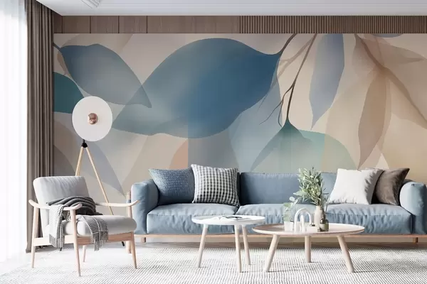 Фототапет елегантни полупрозрачни листа в нюанси на синьо и бежово Nr w05060