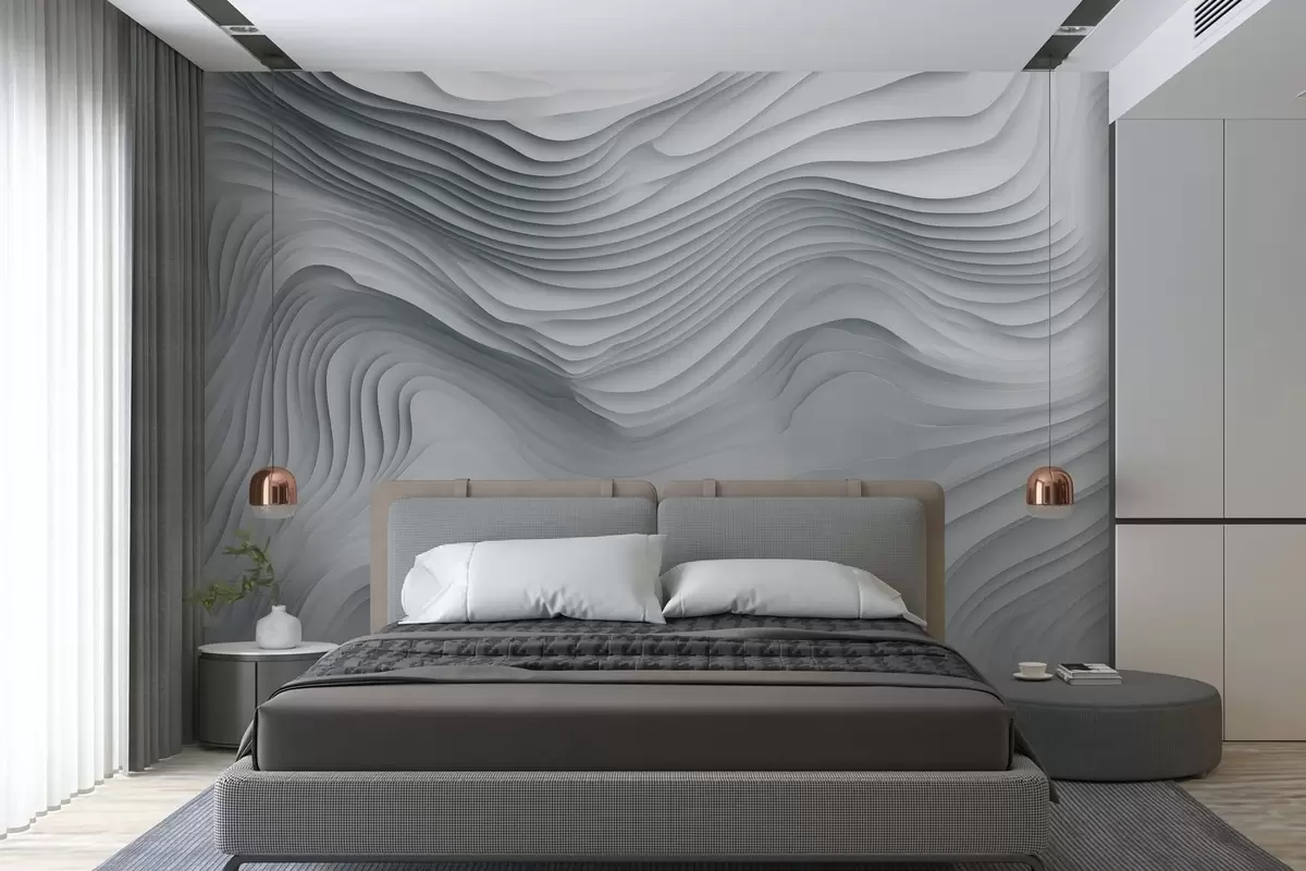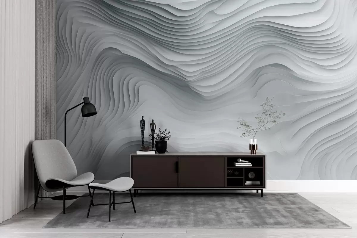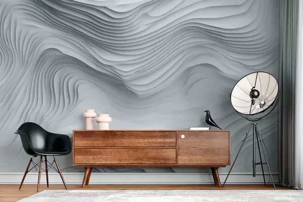 Фототапет имитация на обемни стъпаловидни релефи в сиви тонове Nr w05061