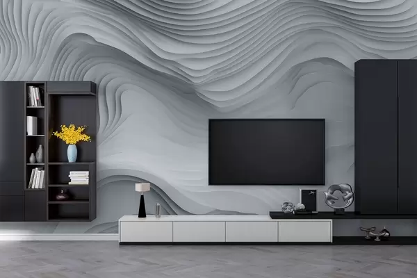 Фототапет имитация на обемни стъпаловидни релефи в сиви тонове Nr w05061