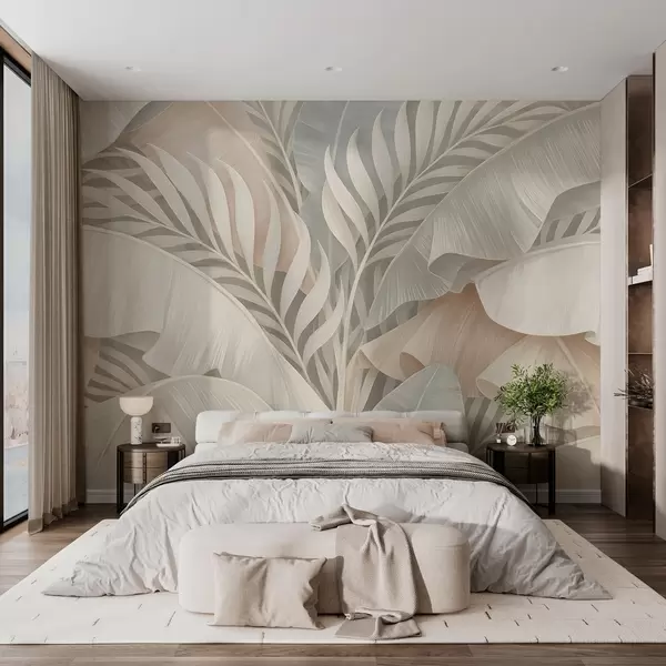 Фототапет големи тропически листа в нюанси на праскова и матово тюркоазено Nr w05062