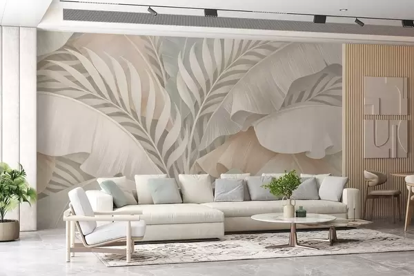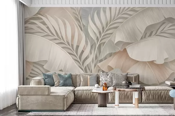Фототапет големи тропически листа в нюанси на праскова и матово тюркоазено Nr w05062