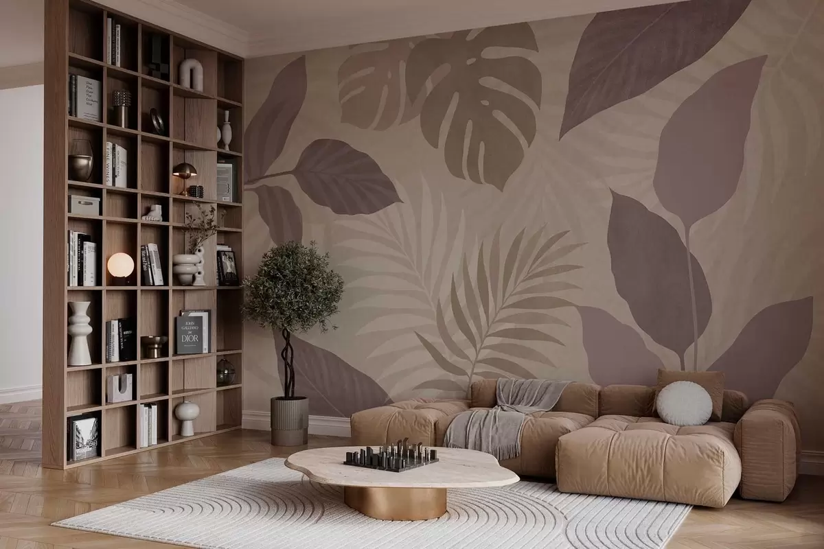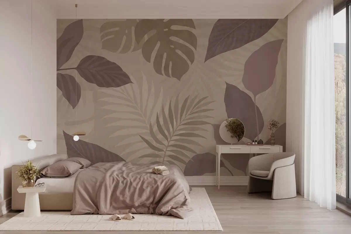 Фототапет текстурирани тропически листа на пясъчен фон Nr w05063