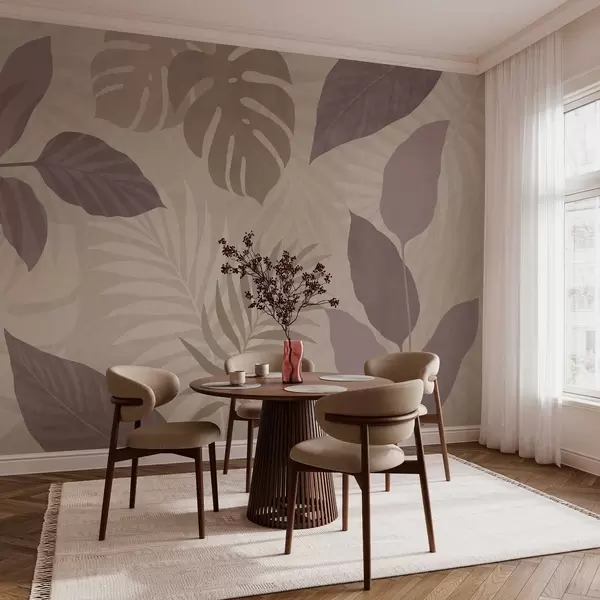 Фототапет текстурирани тропически листа на пясъчен фон Nr w05063