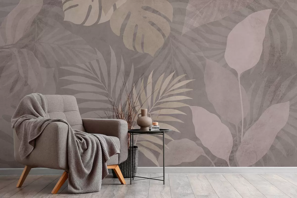 Фототапет текстурирани тропически листа на сив фон Nr w05063v1