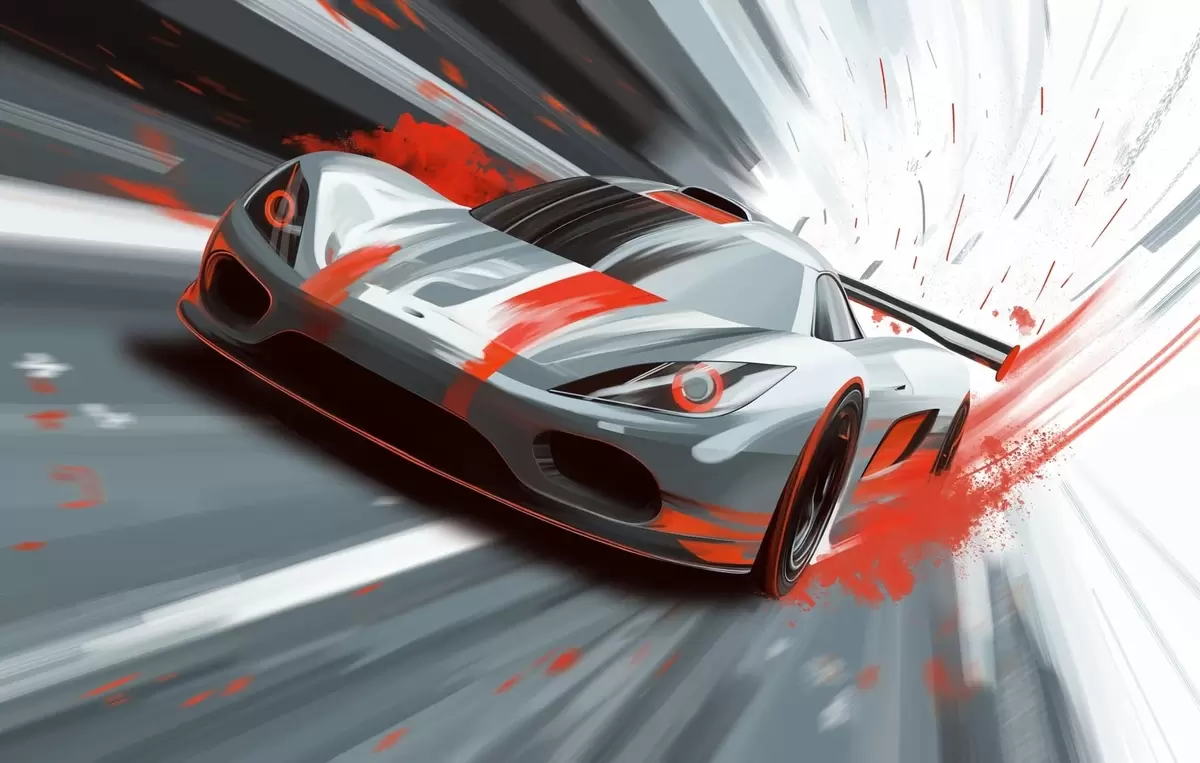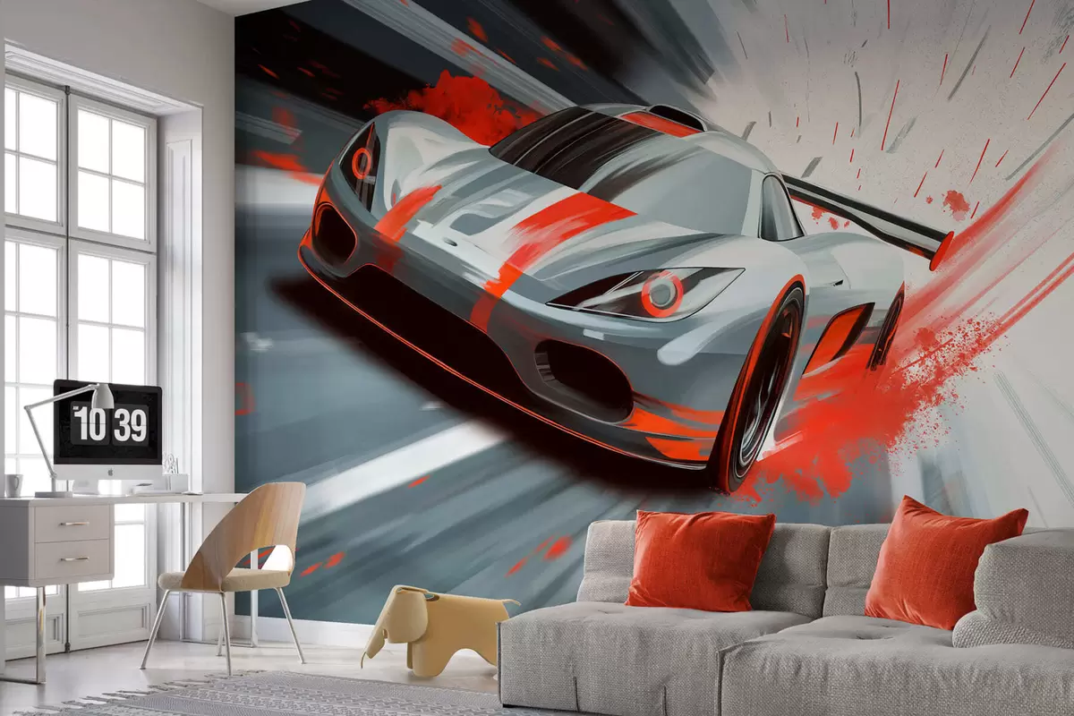 Фототапет динамичен спортен автомобил в стил цифрово рисуване с червени акценти Nr w05069v1