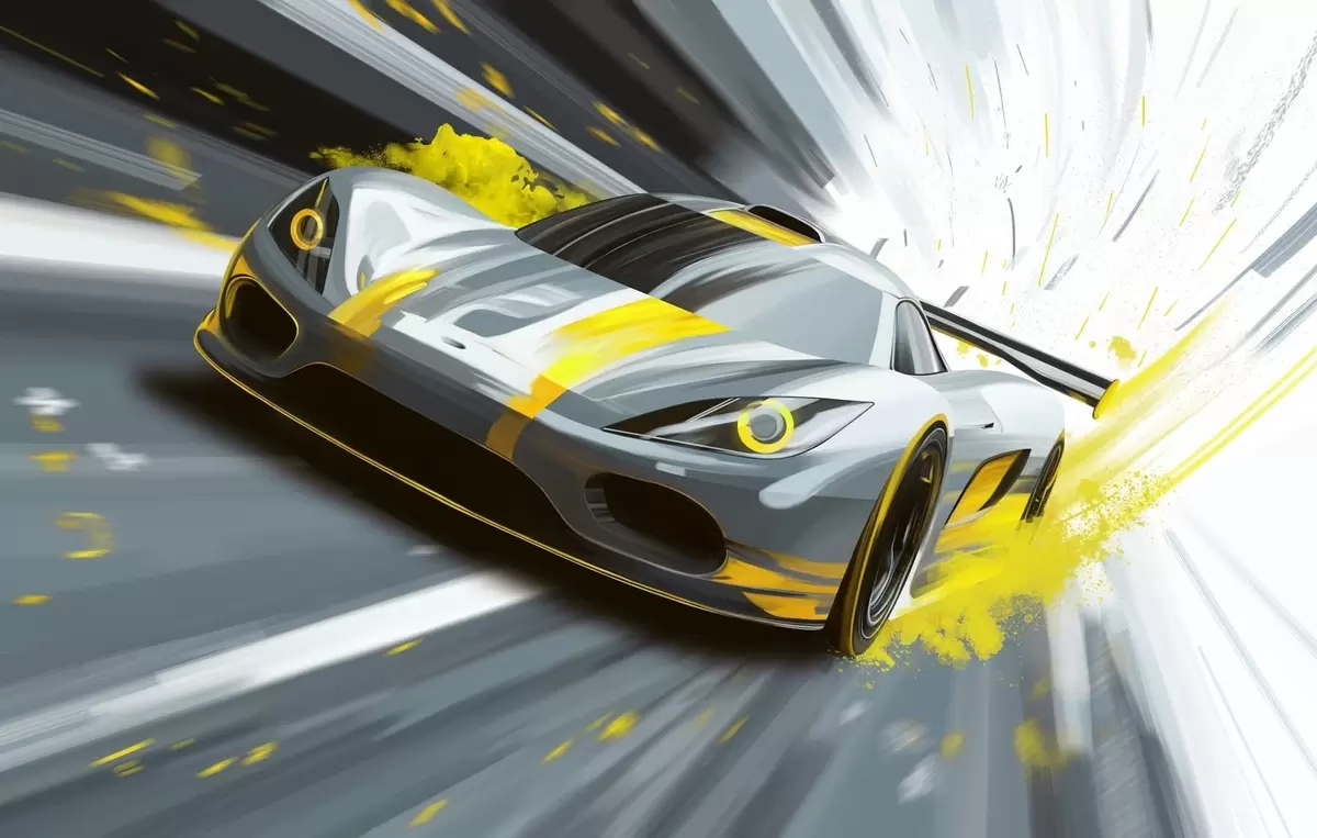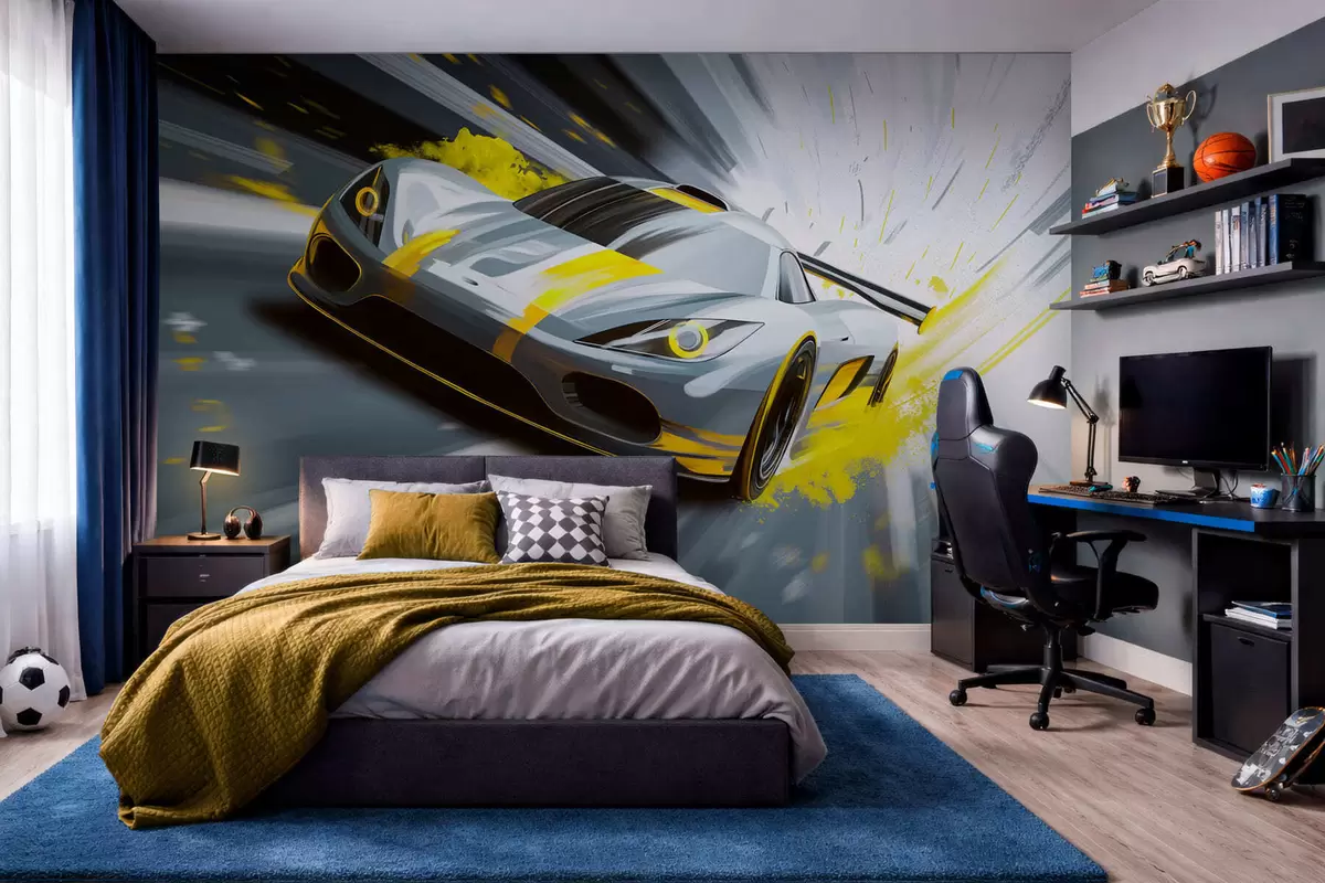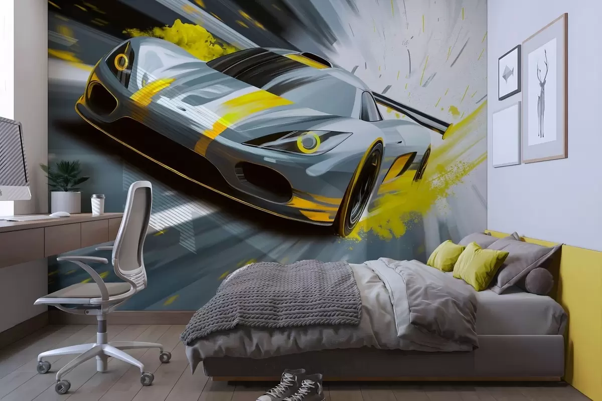 Фототапет динамичен спортен автомобил в стил дигитален рисунък с жълти акценти Nr w05069v2