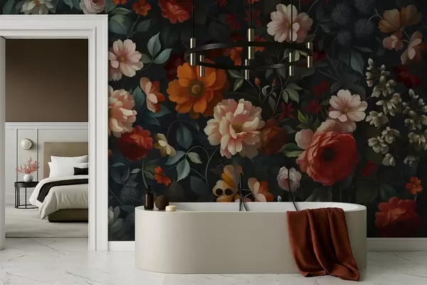 Фототапет Тъмно флорално мотив с пищни градински цветя Nr w05087