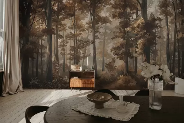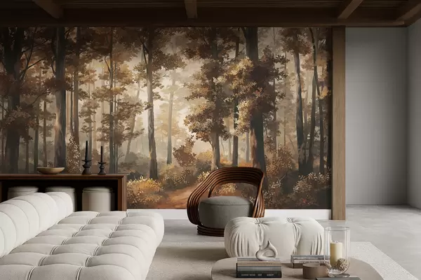 Фототапет Есенна горска гледка с топла светлина и гъсти дървета Nr w05089v1