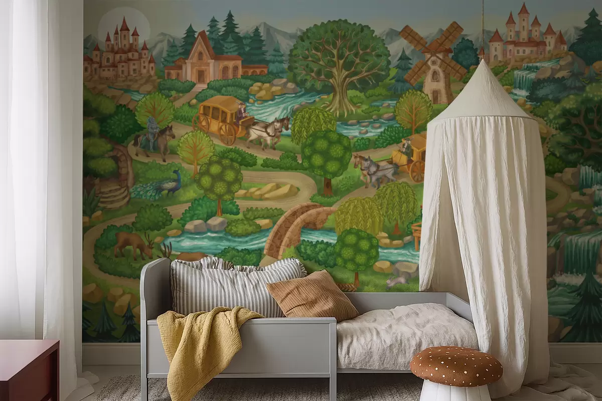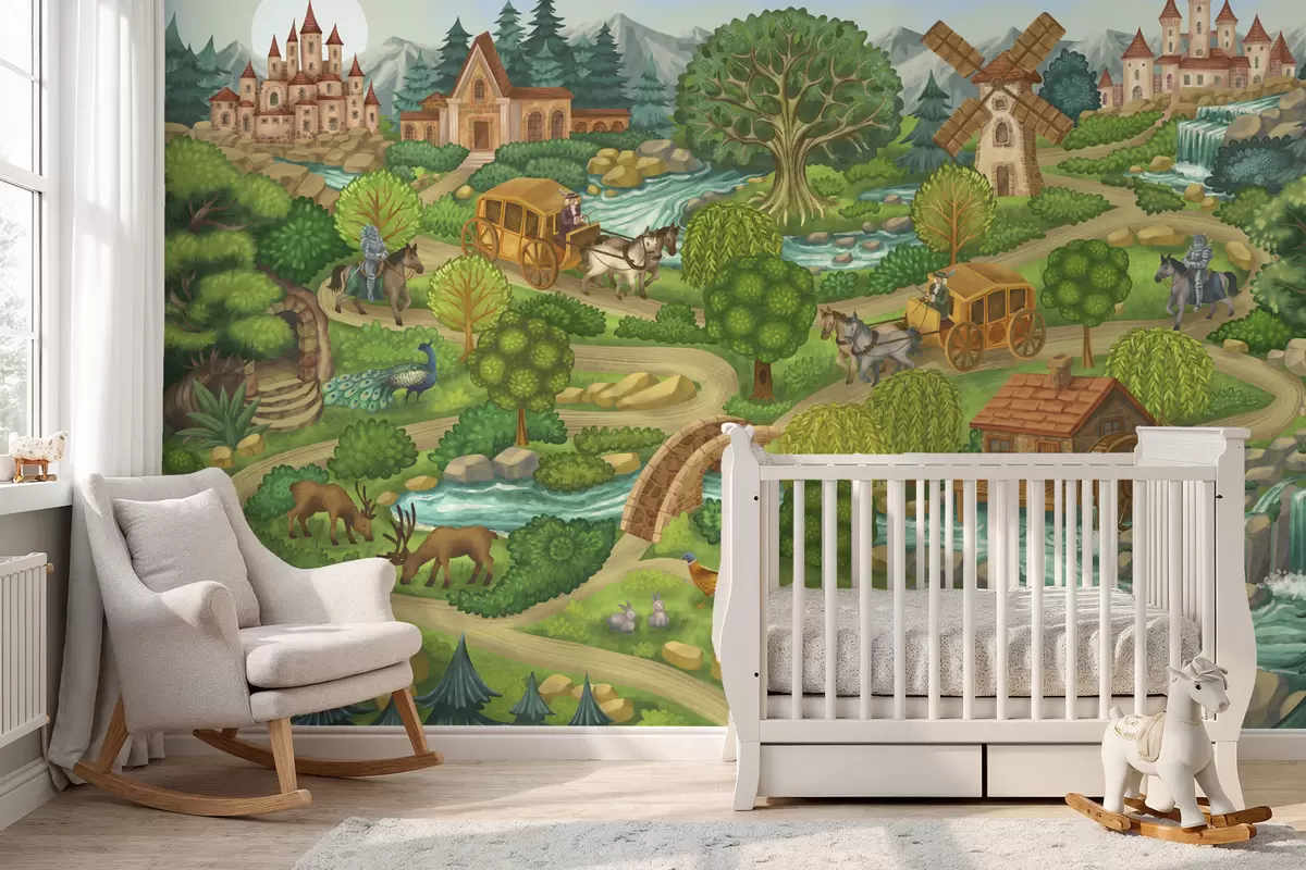 Фототапет Илюстрация с феи, замъци, гори, реки и пътешественици Nr w05091v1