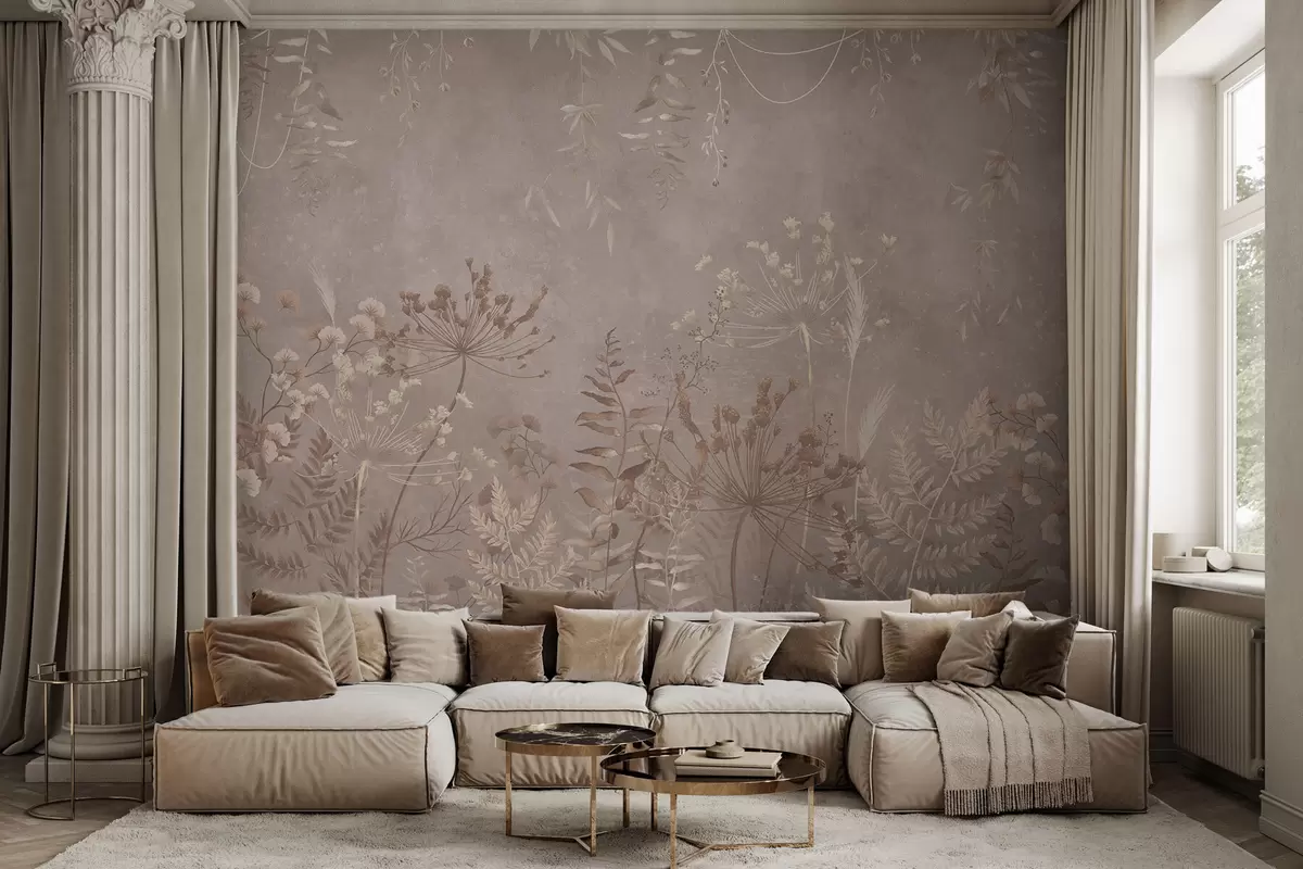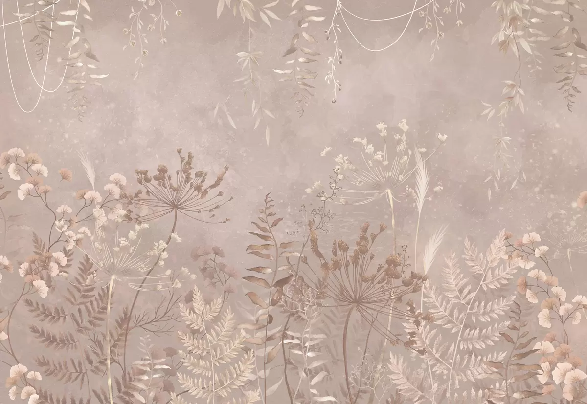 Фототапет Мек бежов ботаничен мотив с диви цветя Nr w05092v2