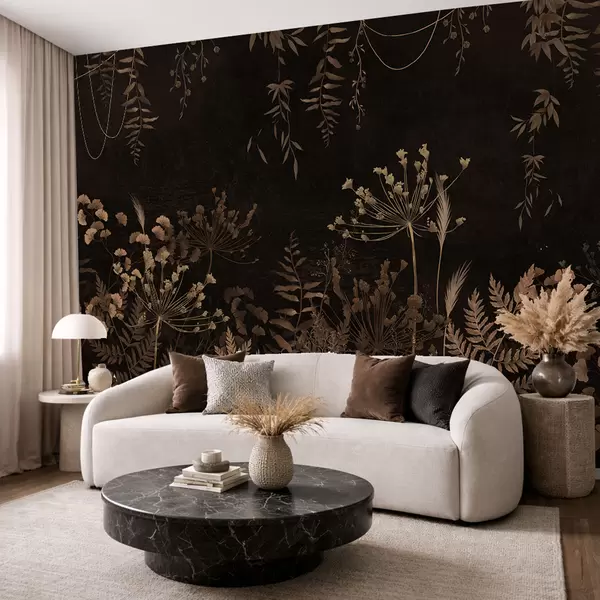 Фототапет Тъмно ботанично мотив с цветя и треви Nr w05092v3