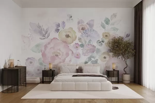 Фототапет Мека акварелна композиция с цветя и листа Nr w05093