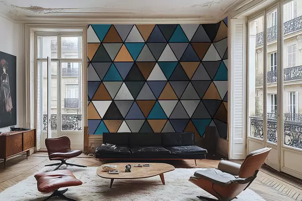 Фототапет Триъгълен геометричен мотив в синьо и топли тонове Nr w05095