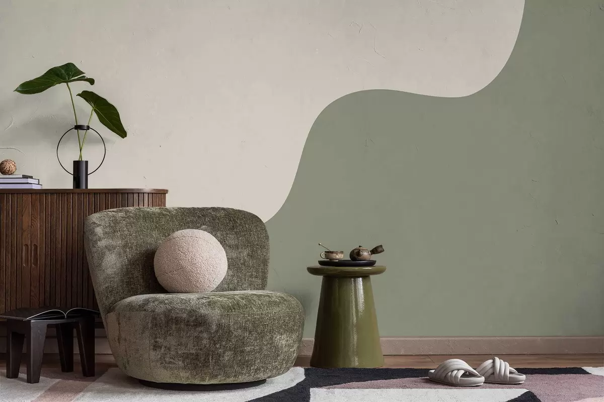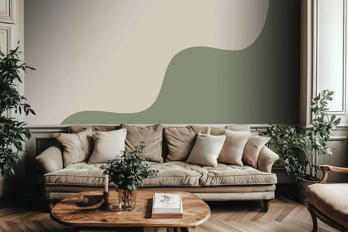 Фототапет Гладки абстрактни форми в светлобежови и зелени нюанси Nr w05097