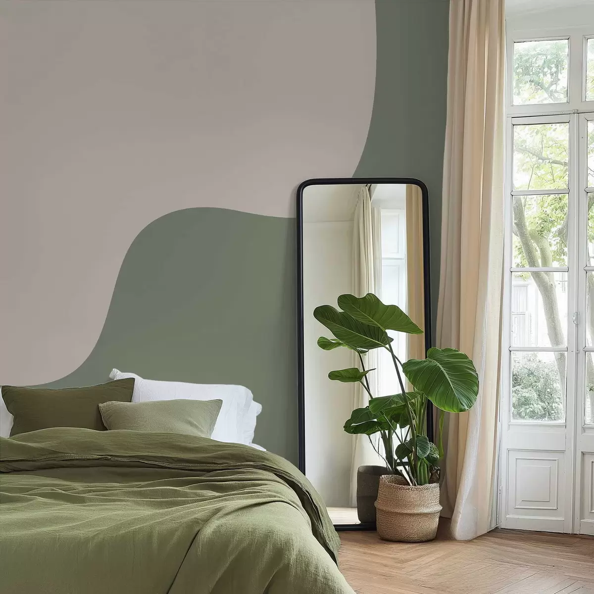 Фототапет Гладки абстрактни форми в светлобежови и зелени нюанси Nr w05097